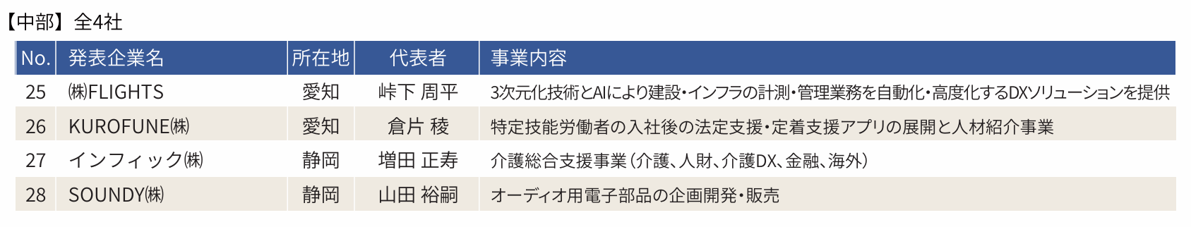 【中部】 4社(静岡・愛知・岐阜)