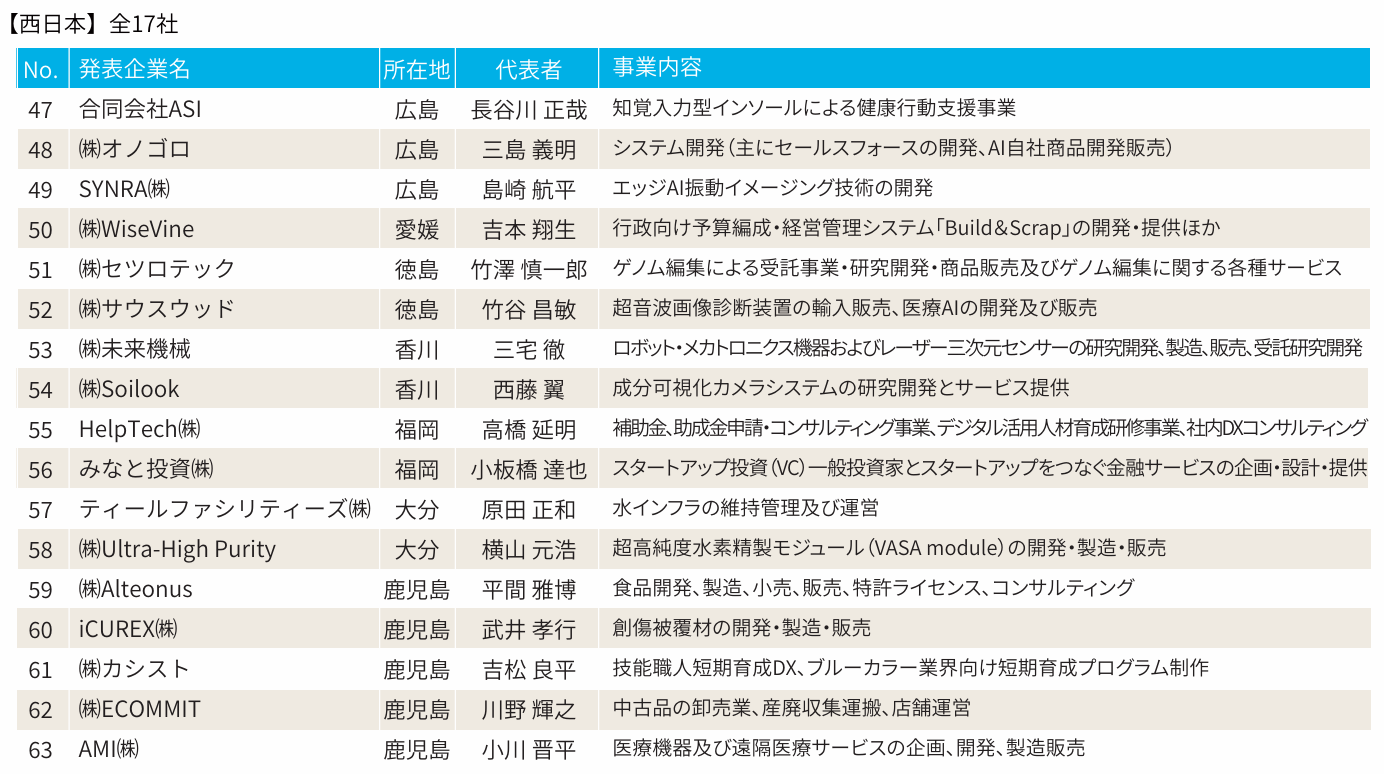 西日本地域全17社から、「成長性」「収益性」「社会性」「国際性」を基準に、