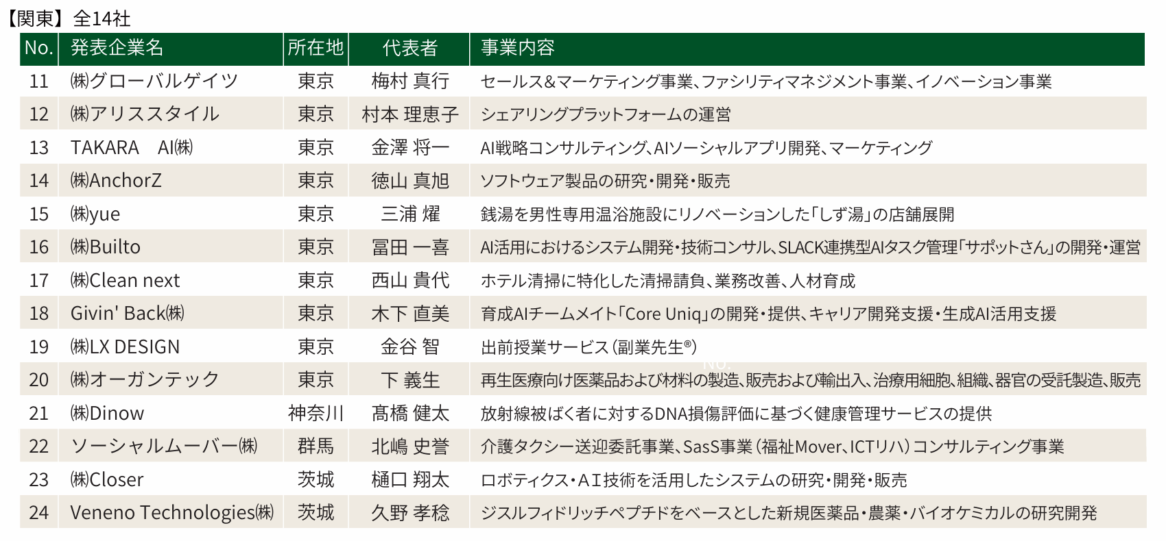 【関東】 14社(東京・神奈川・群馬・茨城)